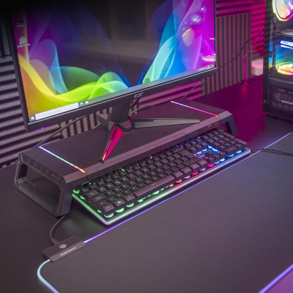 The stand is made from sturdy materials and has a clean, modern look, with subtle RGB lighting if you like the gaming look. It connects via USB and includes a front-facing USB port, which I use mainly for charging a phone or small devices.